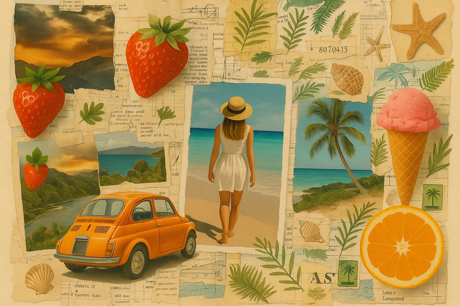 - Создайте коллаж из вырезок журналов и рекламных буклетов с летними изображениями. Такая техника развивает композиционное мышление и умение работать с готовыми изображениями.