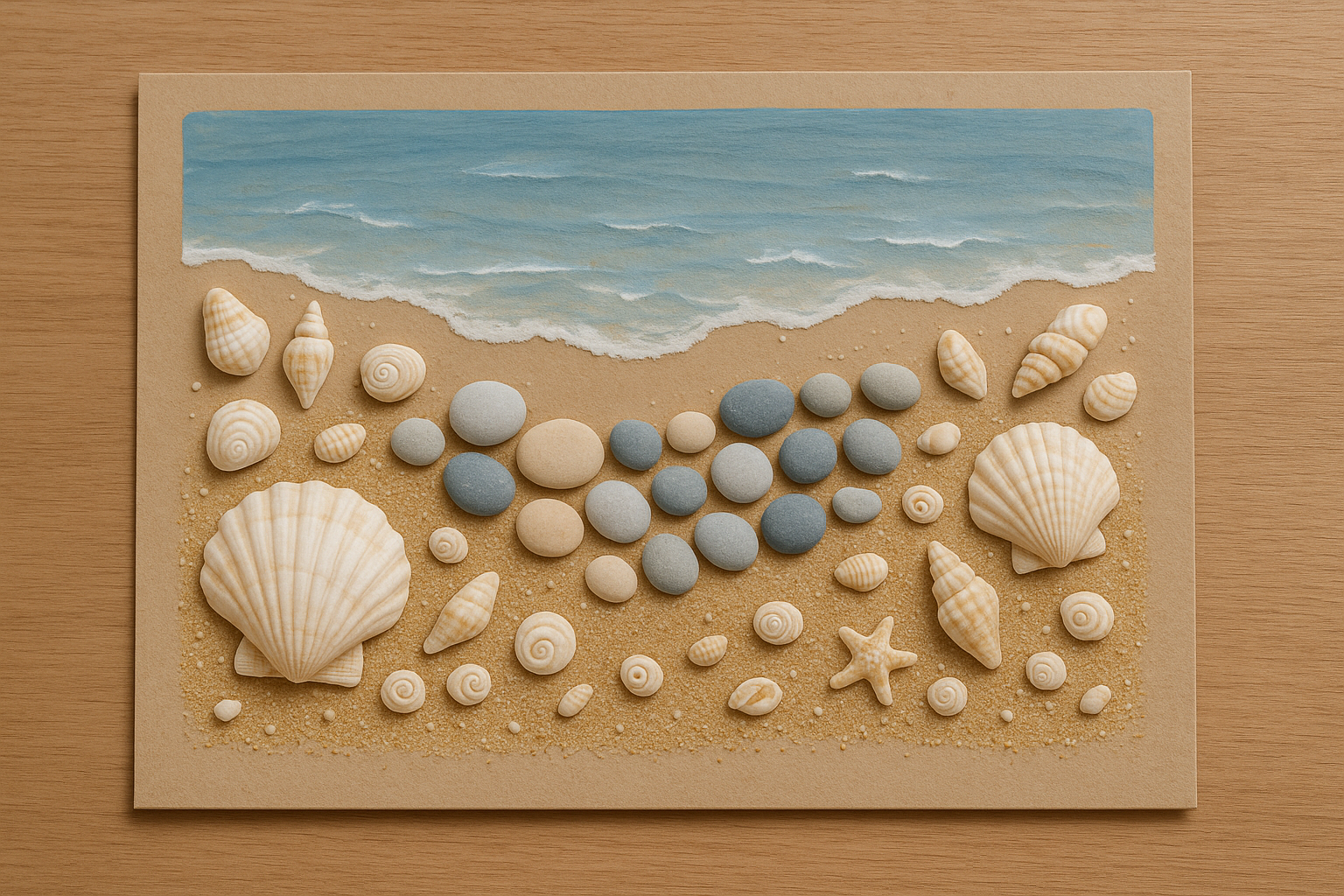 - Создайте коллаж «морской берег» на картоне, используя ракушки, песок и морские камешки.